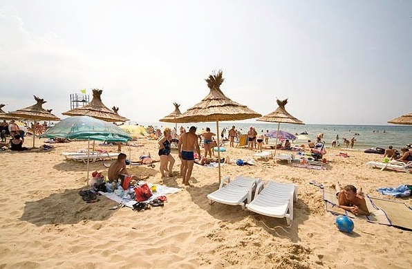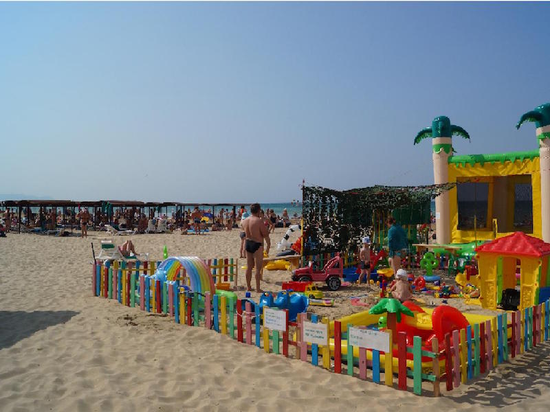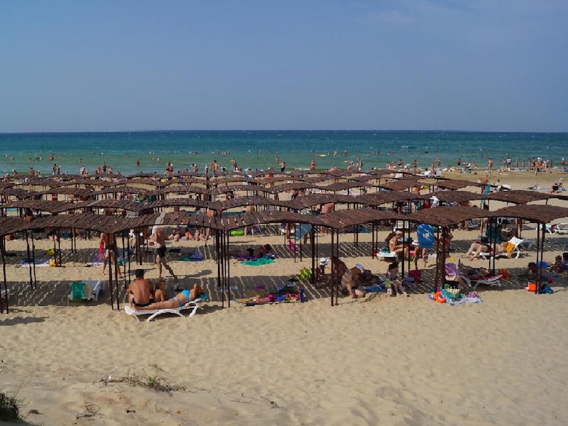 Пляж широкий, чистый, с мелким песочком. Имеются душевые, кабинки для переодевания, туалеты.